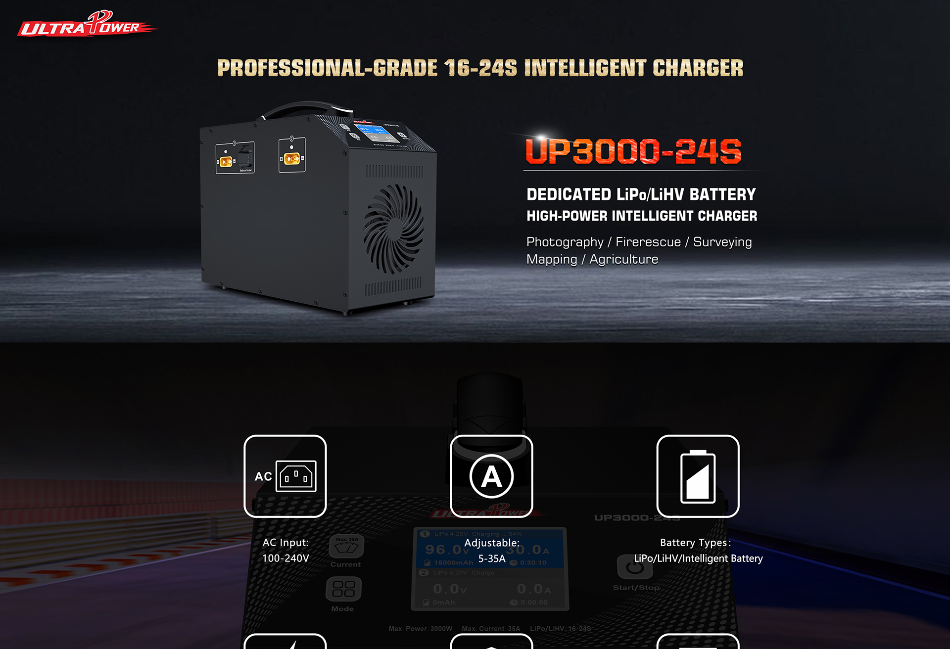 UP3000-24S 3000W 30A 16-24S LiPo/LiHV Intelligent Charger