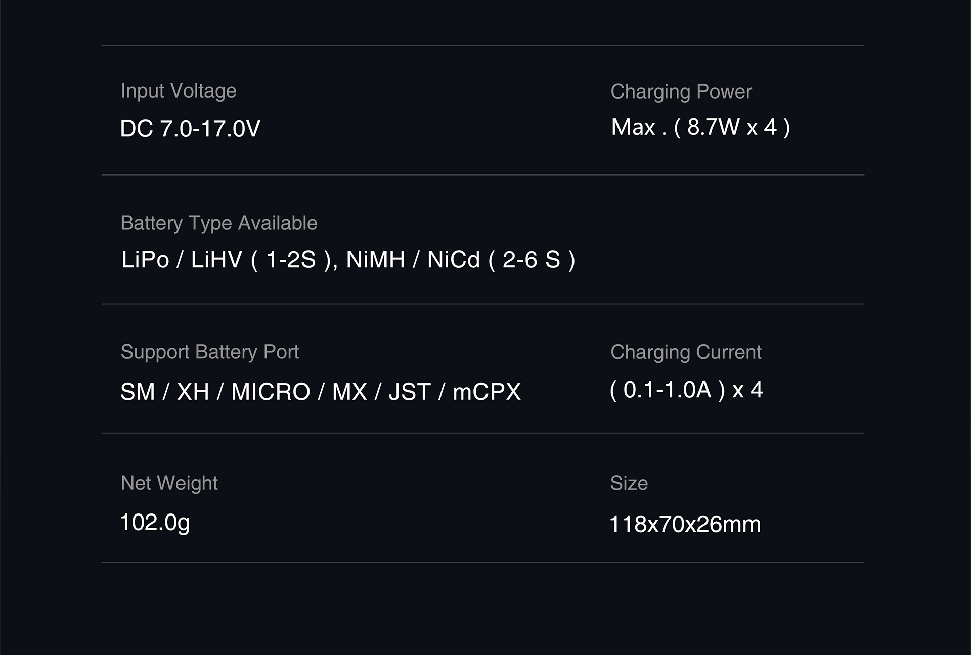 UP-PD1 2S LiPo/LiHV Four Channels DC Charger
