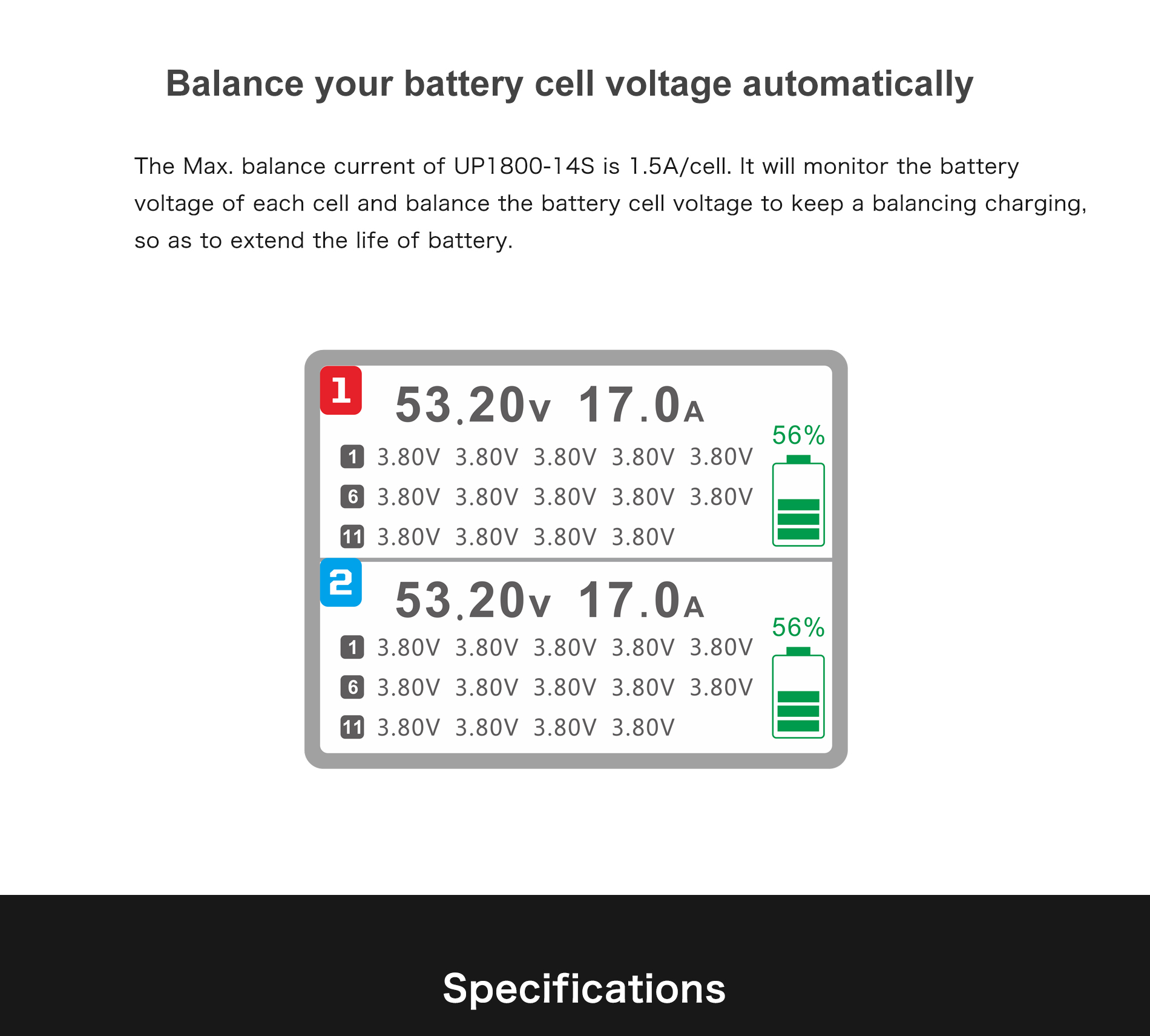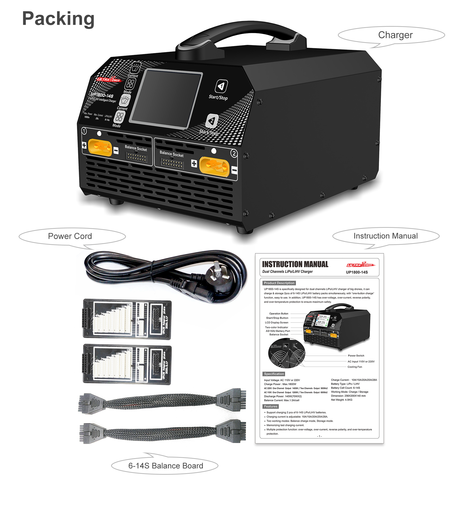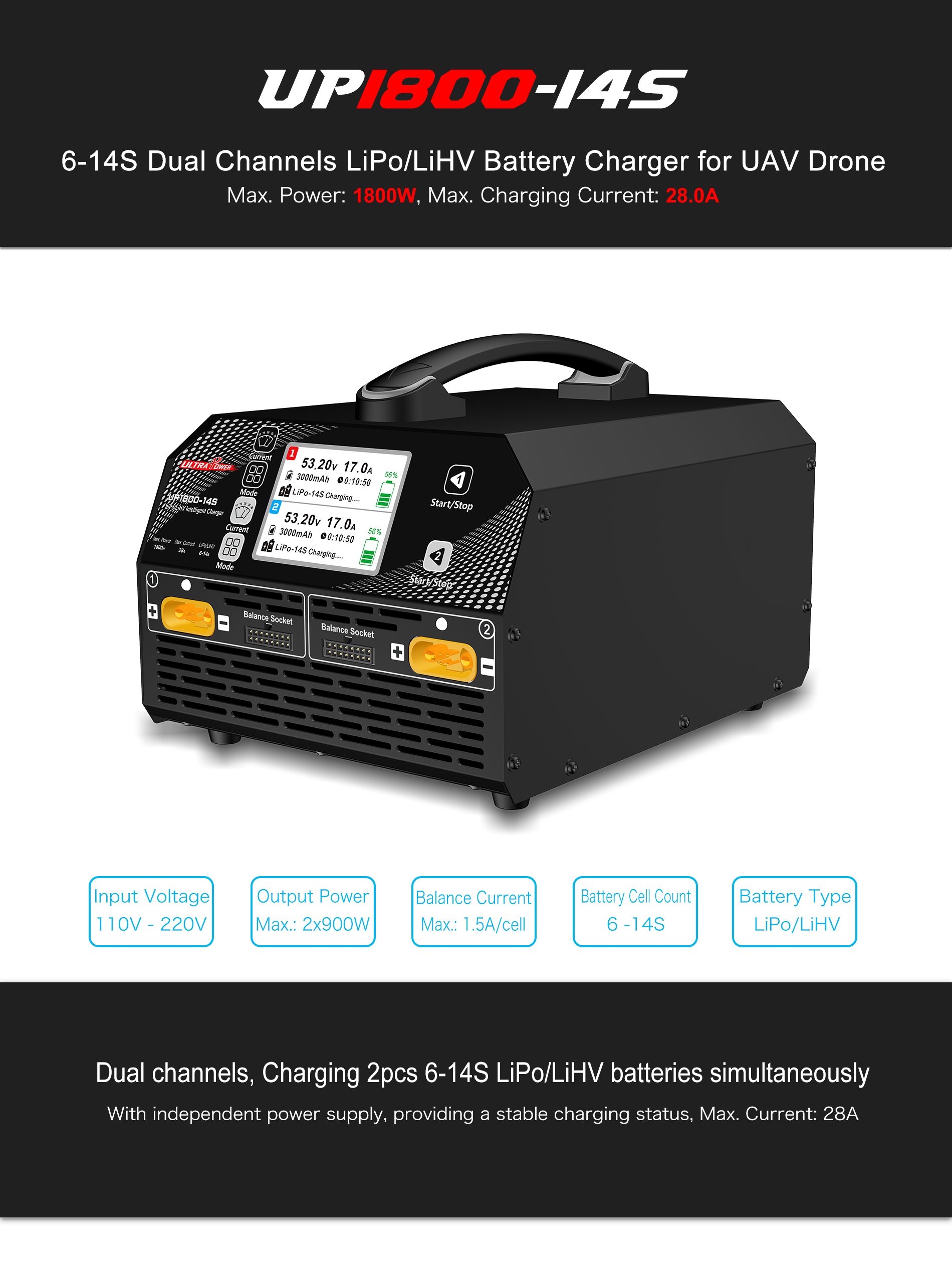UP1800-14S 1800W 28A 6-14S LiPo/LiHV Intelligent Charger