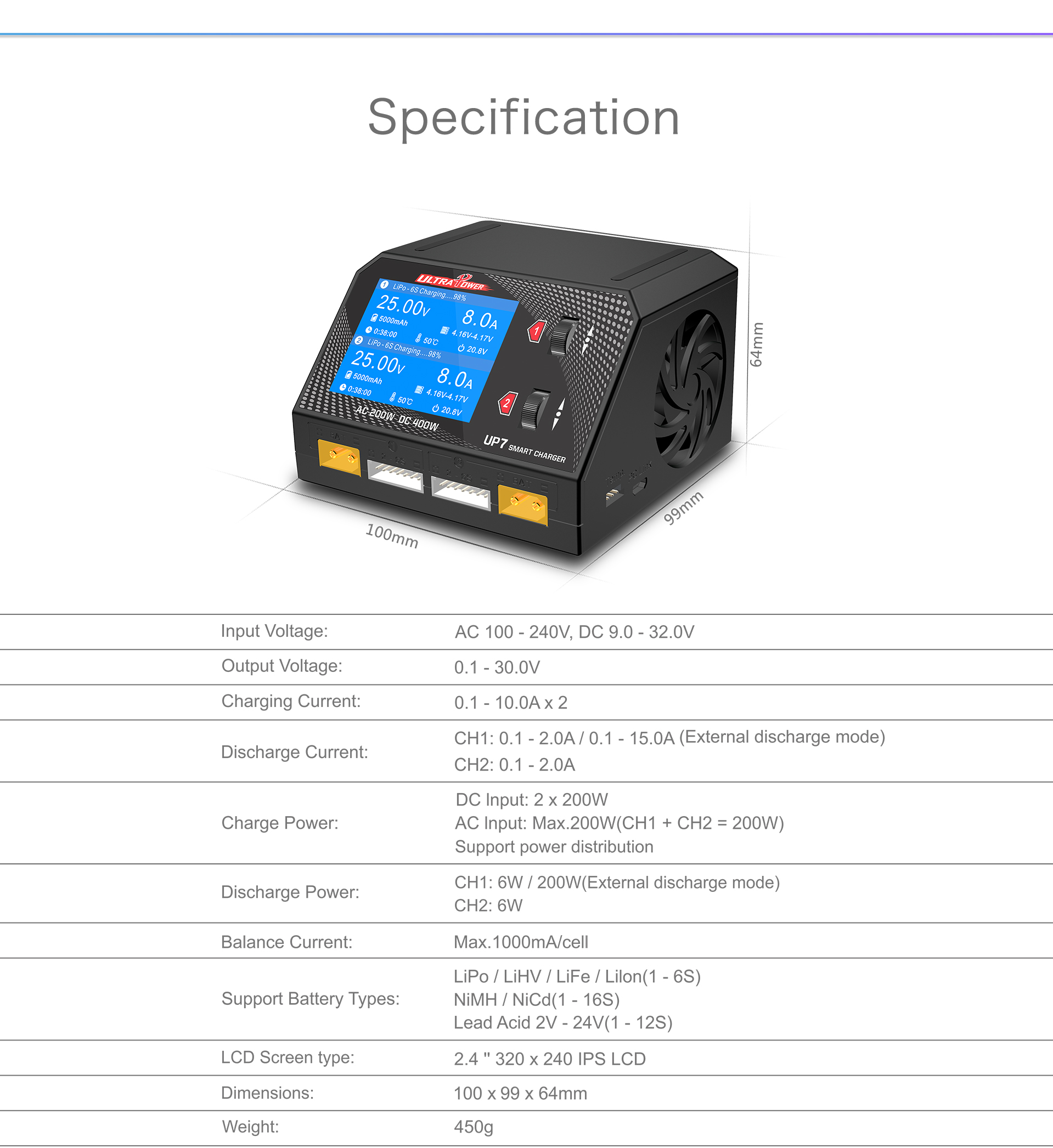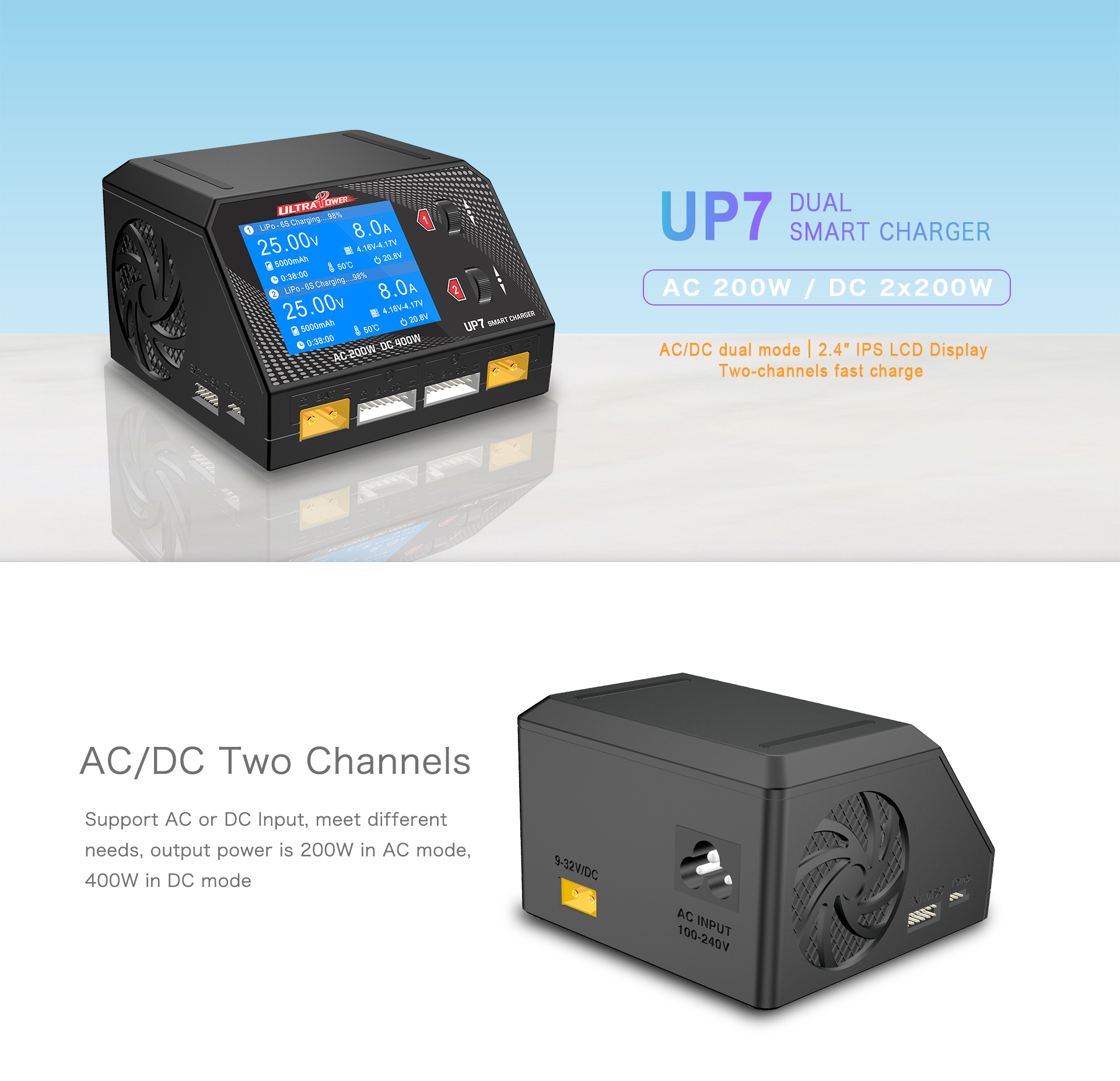 UP7 400W 10A Smart dual channel AC/DC Charger