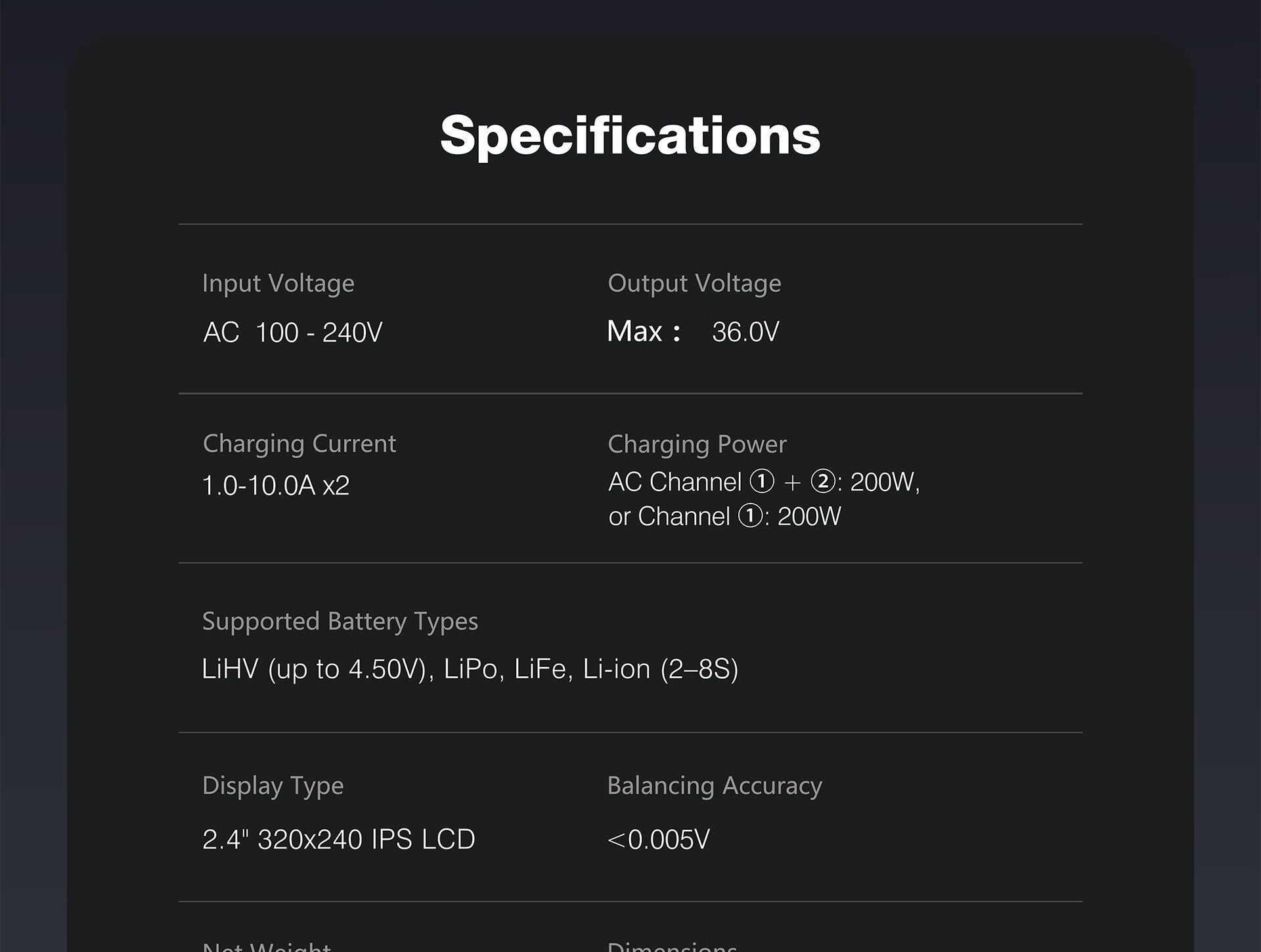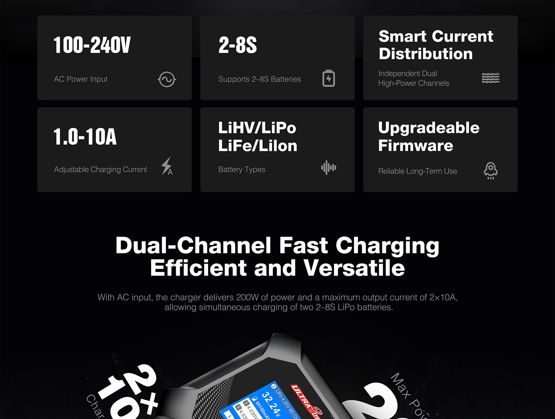 UP13 200W, 10A Smart Dual Channel AC Charger